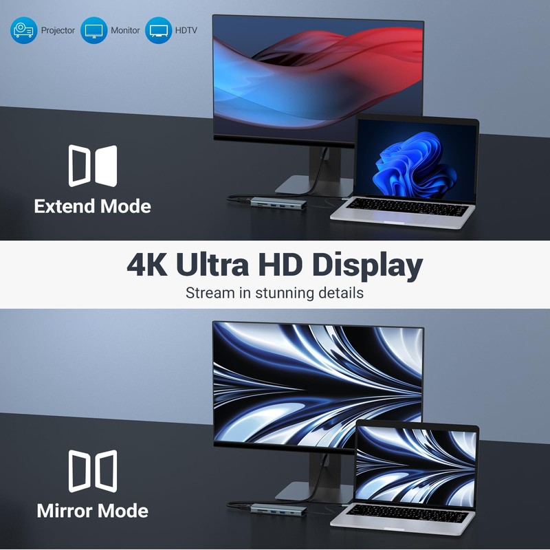 - 【100W PD Charging Powerhouse】 The USB-C power port of this dock is capable of providing a blazing 100W of power, allowing your laptop to charge quickly even while utilizing all the other hub functionalities. Ensure your device's USB-C port supports charging for optimal performance.