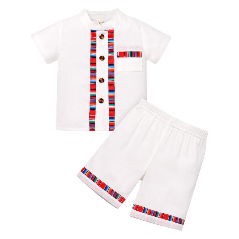 • Mexican Baby Clothes Boy: The traditional Mexican outfits short sleeve button down shirt and shorts, helps your boy create a lovely and charming look. Dress your boy up with this loose folk outfit and celebrate the big day.
