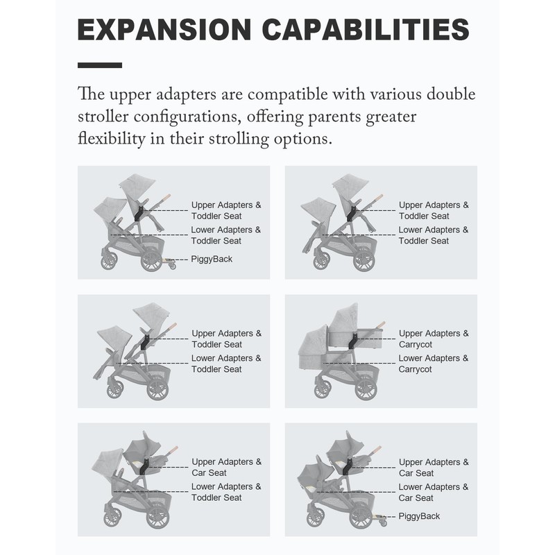 - What’s Included: A pair of upper adapters compatible with Vista, Vista V2, Vista V3 strollers (models), and select infant car seats, plus an instruction manual.