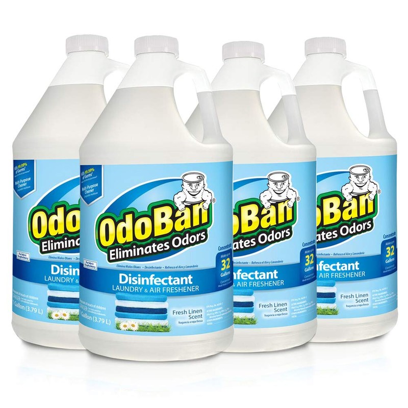 OdoBan 1 Gal Concentrate 4-Pack, Fresh Linen Scent - Odor Eliminator, Disinfectant, Flood Fire Water Restoration