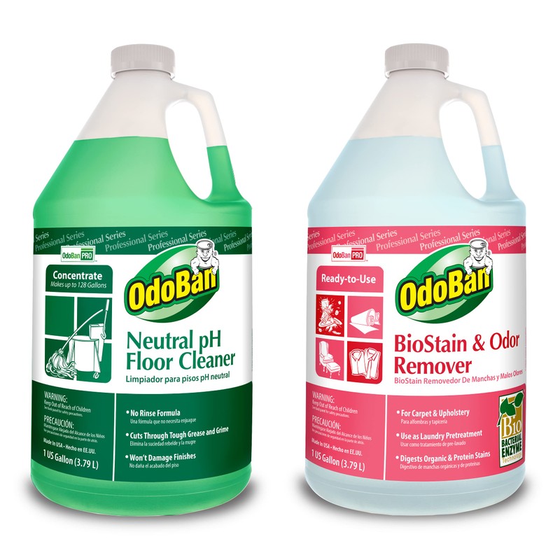 OdoBan Professional Cleaning Neutral pH Floor Cleaner and BioStain and Odor Remover, Made in the USA, 1 Gallon Each