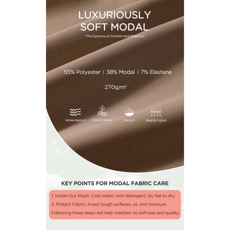Material Type: 55% Polyester, 38% Modal, 7% Elastane
