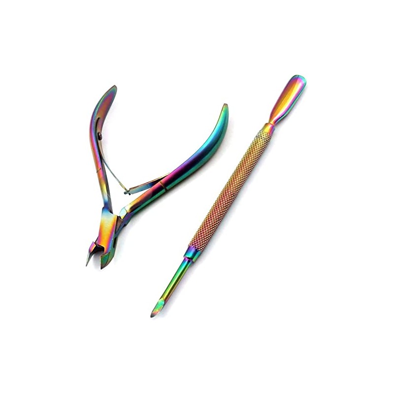 OdontoMed2011 Multi Titanium Rainbow Cuticle Nippers and Cuticle Pusher Manicure Tools Set Professional Stainless Steel Nail Cuticle Remover Cutter Clippers Tool for Gel Nail Art Fingernails Toenails