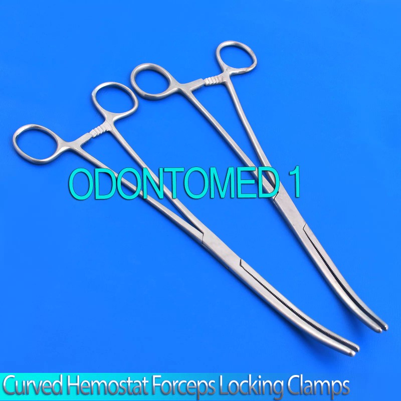 ODONTOMED2011 New Set of 2 Pairs 10" Curved Hemostat Forceps Locking Clamps - Stainless Steel