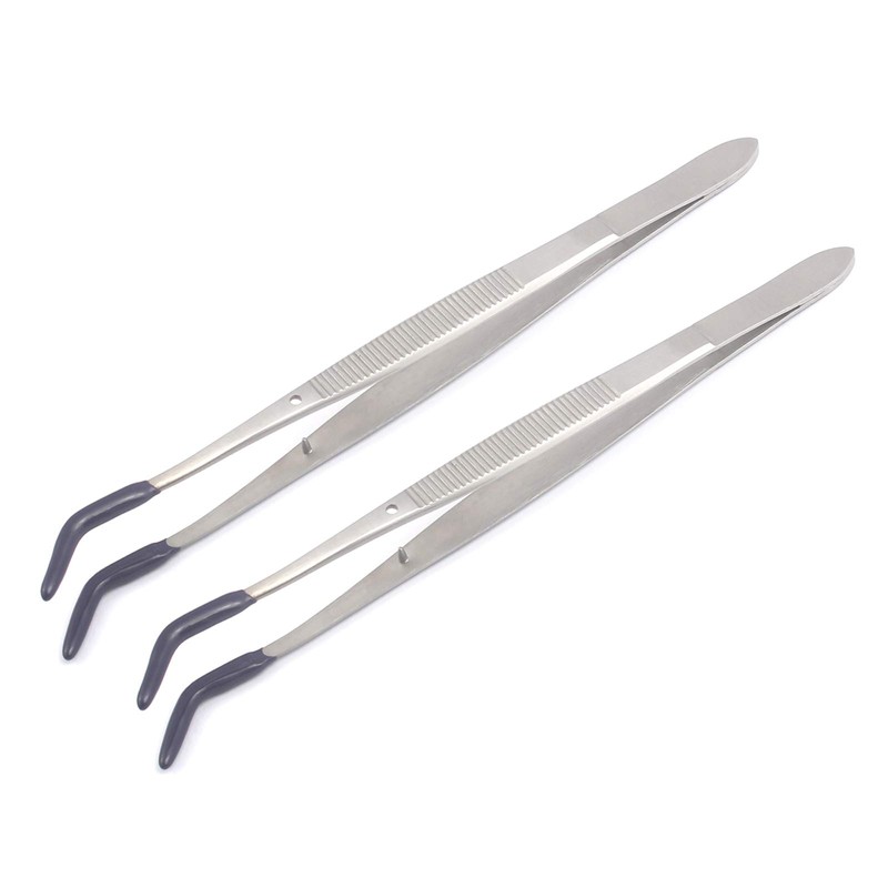 - Set of 2 Pcs Rubber Tips Tweezers 6.5 inches Bent Tips