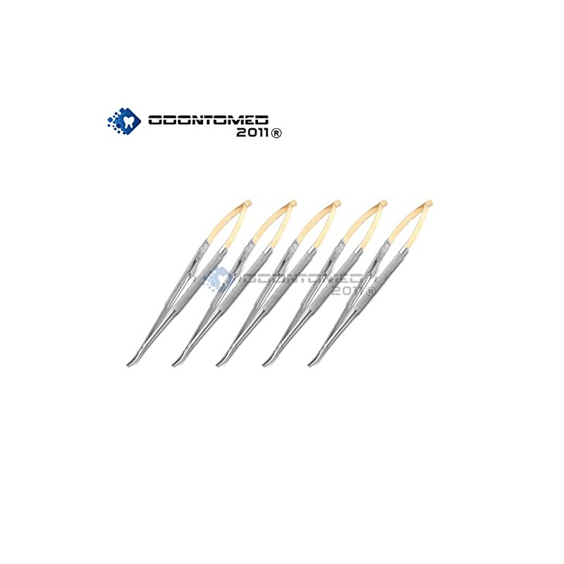 OdontoMed2011 Set of 5 Pieces T/C Castroviejo Needle Holder 9" Curved with Lock Round Handle TC Dental Instruments ODM