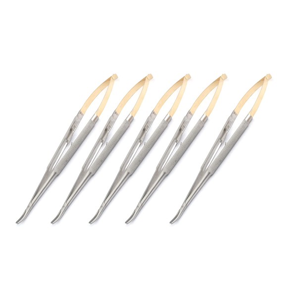 - 5 Pieces T/C Castroviejo Needle Holder 9" Curved With Lock Round Handle TC Dental Instruments