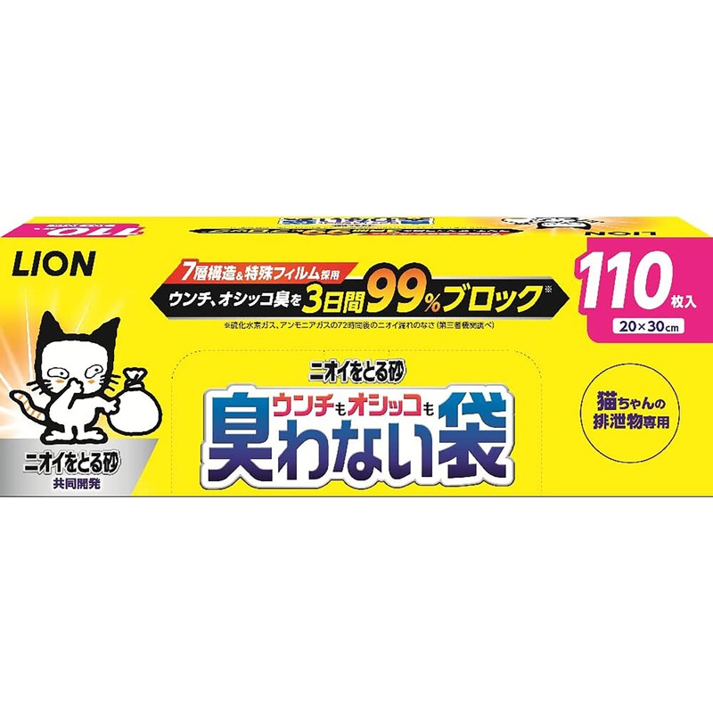 Odor-Absorbing Sand (Lion Limited) No Poop and Pee Smelly Bags, For Cats, 110 Sheets, 99% Block for 3 Days