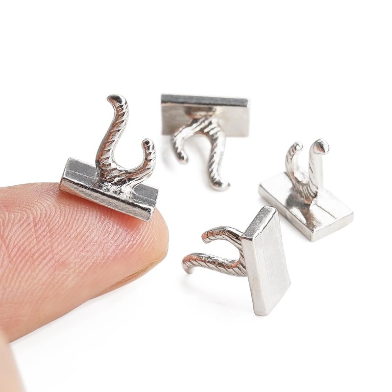 Odoria Miniature Hooks: 1/12 Scale Modern Industrial Silver Metal 4Pcs Dollhouse Decor