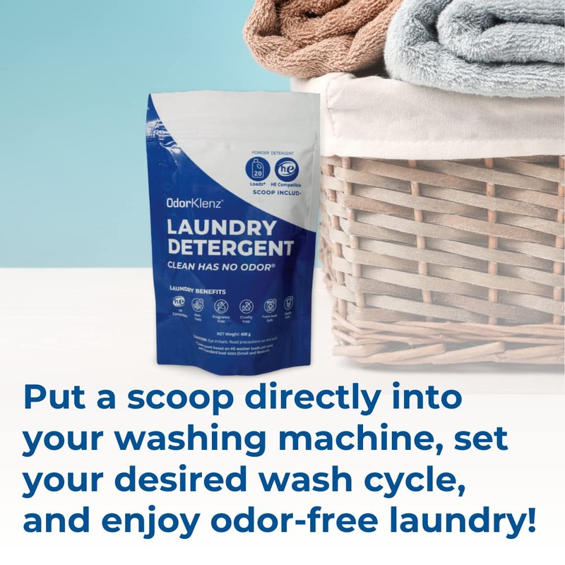OdorKlenz Powder Laundry Detergent, Odor and Stain Removal for clothes, towels, linens, etc., Non-toxic, Hypoallergenic, Unscented, Safe and Gentle on clothes and skin