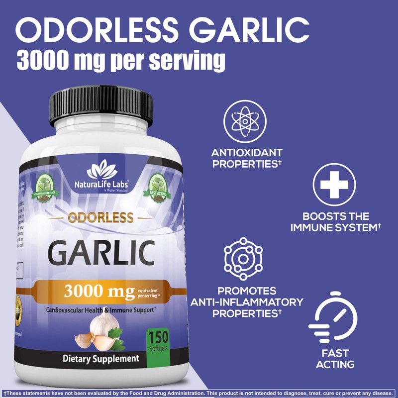 NaturaLife Labs A Higher Standard Odorless Garlic 3000 mg per Serving Immune System Support - 150 Soft gels