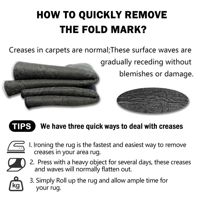 - Special attention - The Art rugs is folding packing.The rug may have a little crease and mark when it is unrolled. You can use an iron to flatten it quickl.