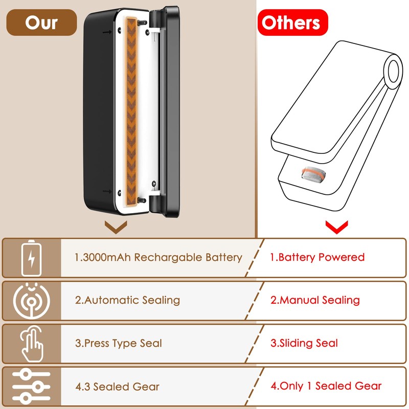 - Rechargeable film sealer: the bag sealer rechargeable 3000 mAh battery of the portable bag sealer with updated technology does not need to replace the battery frequently.