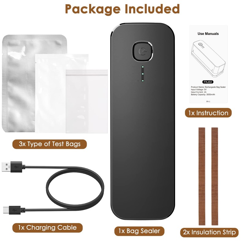 - 💝【What you get】: 1 x ODSD rechargeable film sealer, 1 x USB-C charging cable, 1 x user manual, 2 x replacement thermal insulation strips, 6 x exercise plastic bags, friendly sale after customer service. If you have any problems with using the product, please do not hesitate to contact us.