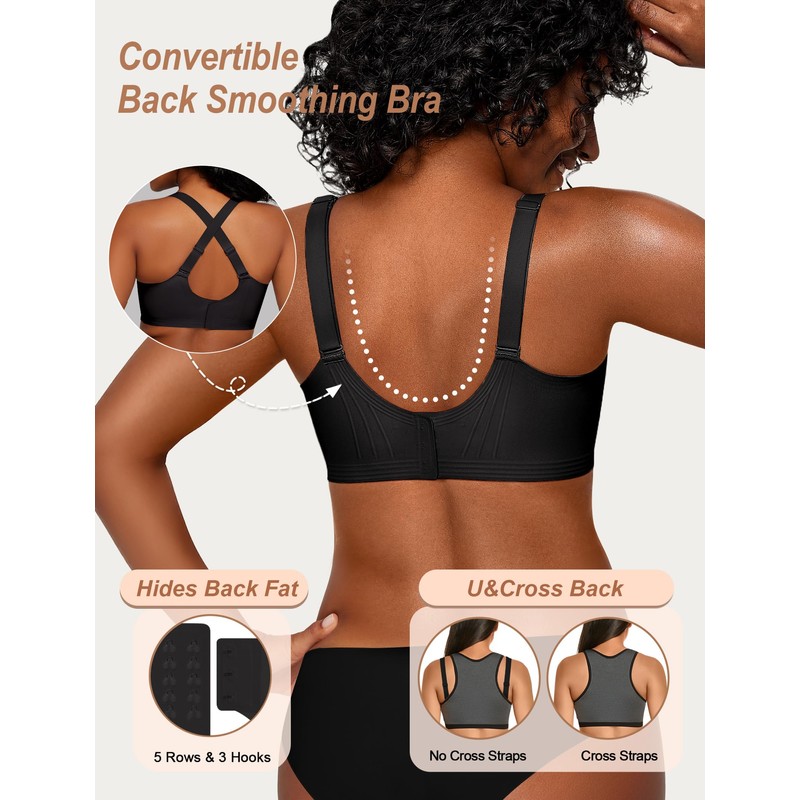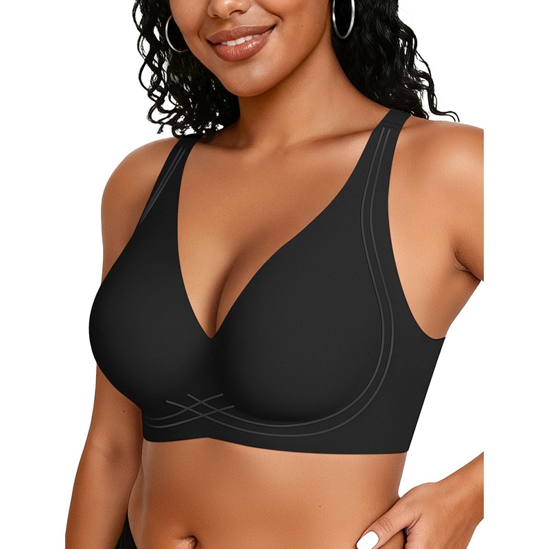 - Seamless Smoothing Bra - Designed with a 2.5-inch widened back closure featuring lift jelly band and bonded design smooths back fat and reduces bra movement when raising arms, no adjustments. The 4.7 to 5.5-inch wide side panels smooth side breasts and prevent overflow, ideal for women with full, soft breasts or extra flesh under arms and back. Adjustable shoulder strap have a brushed interior texture to reduce slippage and alleviate shoulder pressure, ensuring comfortable wear.