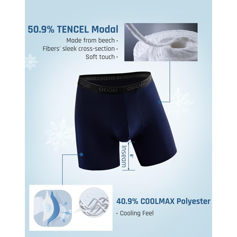 - Breathable Men's Underwear: The men's boxer briefs are crafted with a blend of Tencel and Coolmax fabric, creating sweat channels that wick away moisture. This innovative design, coupled with a comfortable fit and quick-drying functionality, reduces the need for frequent machine drying. The men's micro modal boxer briefs bring comfort and convenience