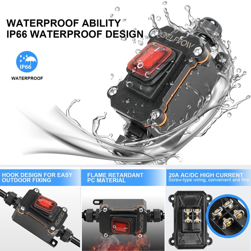 - Excellent Waterproof Ability: This inline switch features IP66 grade waterproof design, with excellent waterproof performance. It has proven to be waterproof even in extreme rainy condition! It is perfect to use it as an outdoor switch for patio and garden