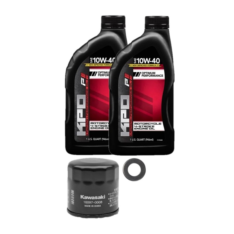 - Kit includes: x2 Qts 10W40 4-Stroke Motorcycle Engine Oil K61021-101-01Q, x1 OEM Oil Filter 16097-0008, x1 Drain Plug Gasket 92065-097 (Oil Superseded from K61021-202A)
