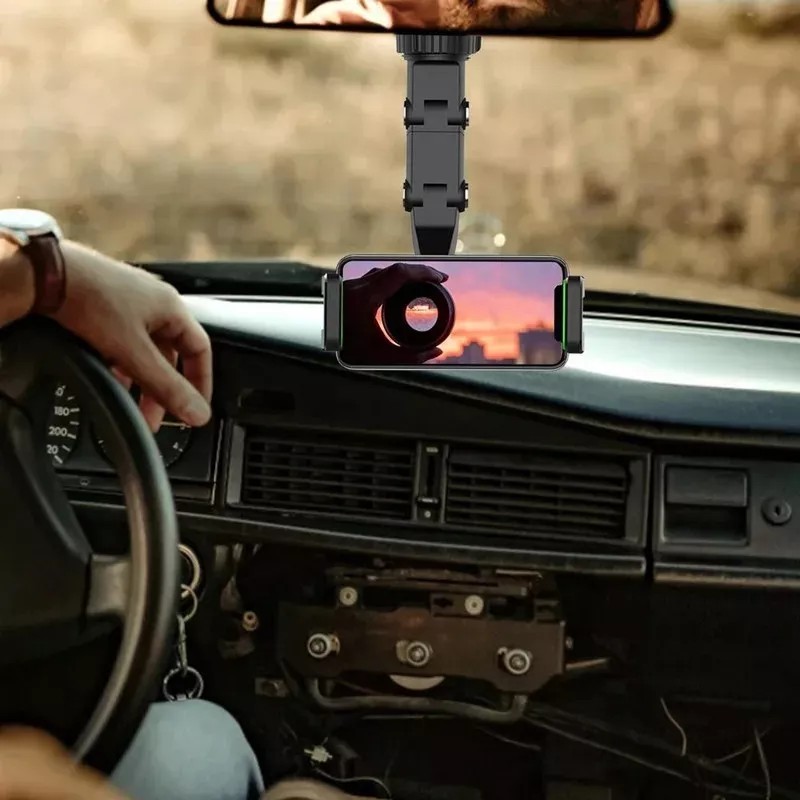 Soporte de teléfono para coche multifuncional 360 grados giratorio Auto espejo retrovisor asiento colgante Clip soporte para teléfono móvil para coche