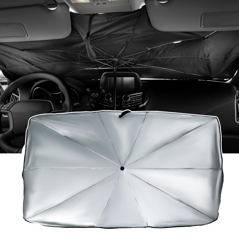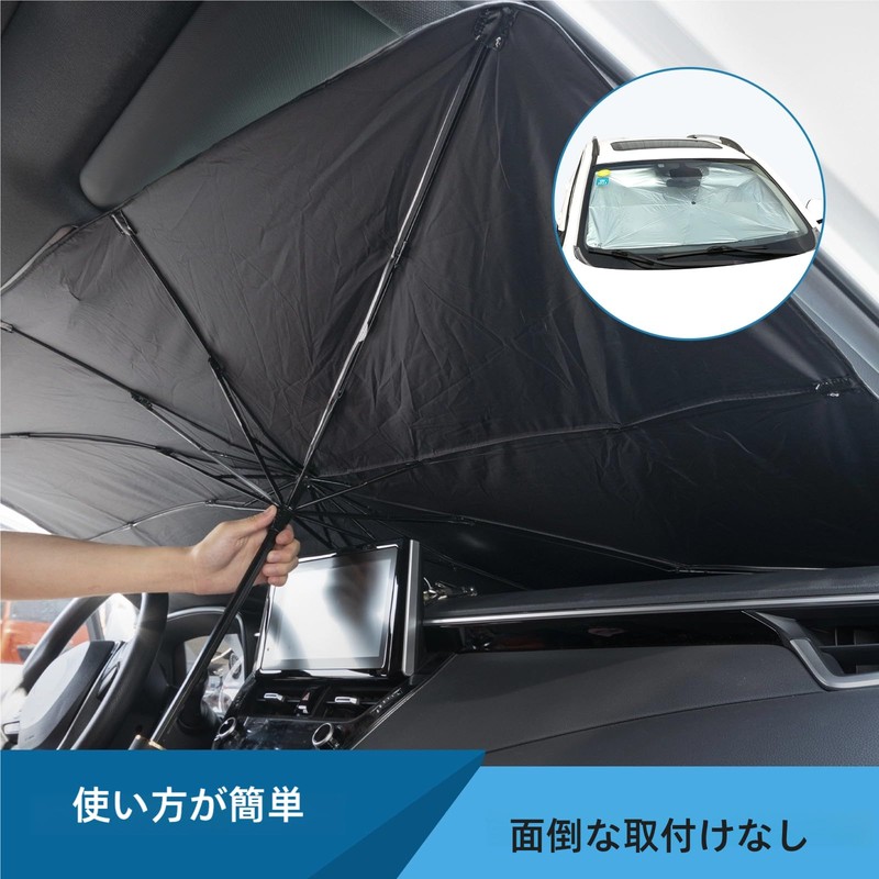 • 【 車用サンシェード傘型】 サイズ:117cm×66cm、車のフロントウィンドウをすっぽり覆うことができます。傘型サンシェードのデザインは、駐車時にワンタッチで開閉でき、一人で簡単に取り付けられるので、面倒な手順とはおさらばです。従来の折りたたみ式とは異なり、吸盤や接着剤を使わずに数秒で固定できます。雨の日に傘を忘れたときの臨時の傘としても使えます。車、SUV、その他多くの車に適しています。(注意:購入前に車の窓サイズを確認してください)