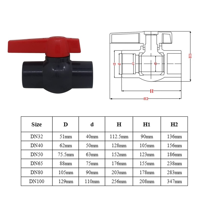 PVC Kugelhahn 20 25 32 40 50 63 75 90 110mm Ventil Schlauch Pool Wasserhahn PVC Rohr Landwirtschaft Kunststoff
