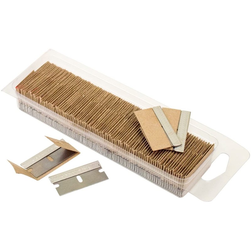 - IDEAL RAZOR SCRAPER DESIGN: Our razor blades for box cutters are designed to fit all standard safety scrapers; Each paint scraper razor blade has been stamped to show the size; Single sided razor blade has chamfered drive end for quick attachment