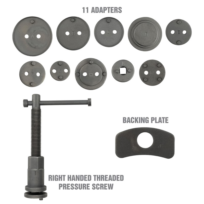 - HEAVY DUTY DISC BRAKE PISTON TOOL: These brake caliper kits are constructed from steel for long-lasting strength and durability; Piston wind back tool set has a rust-resistant finish; Disc brake caliper kit prevents damage to pistons and seals