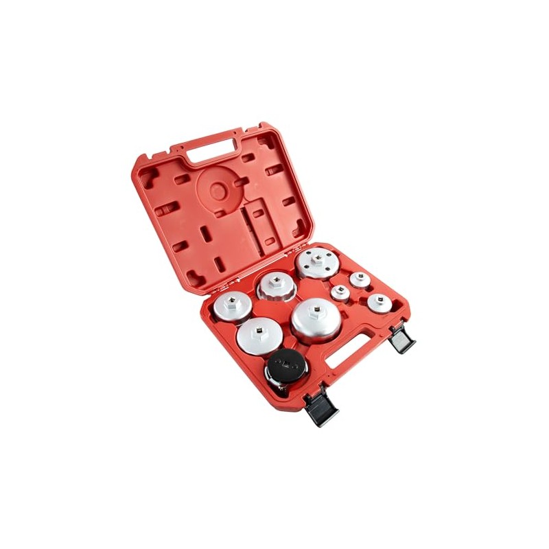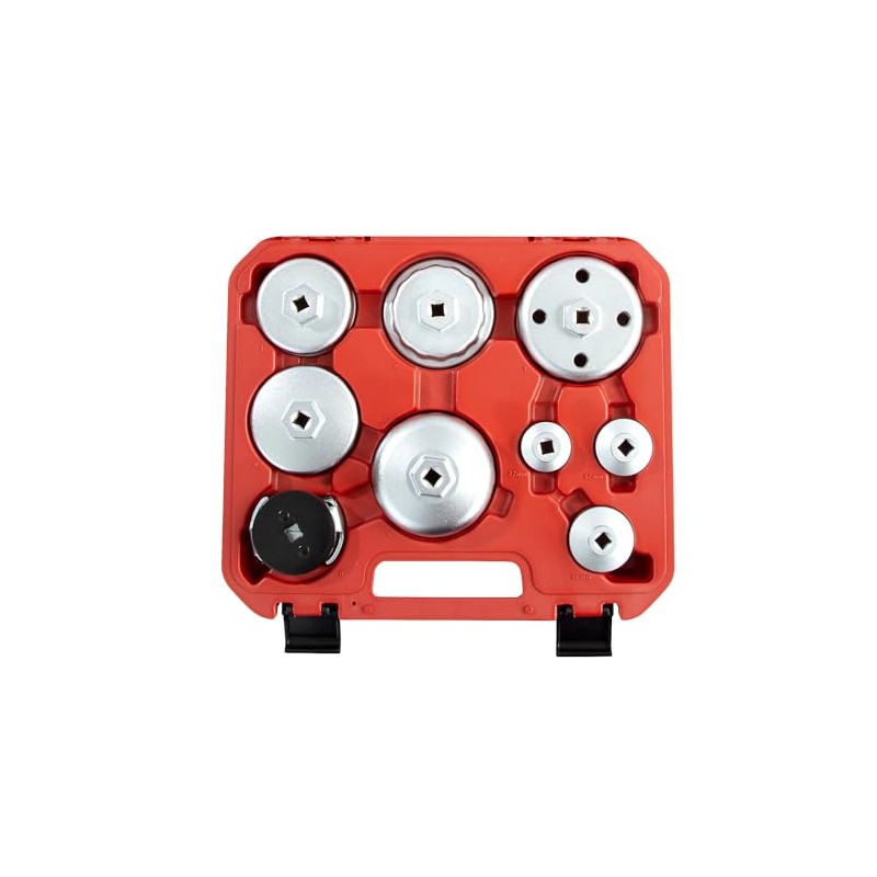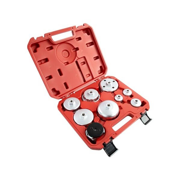 - Out Of Sight, Out Of Mind: All nine filter oil wrench caps fit snugly in a red carrying case with a handle, making them easy to store and transport