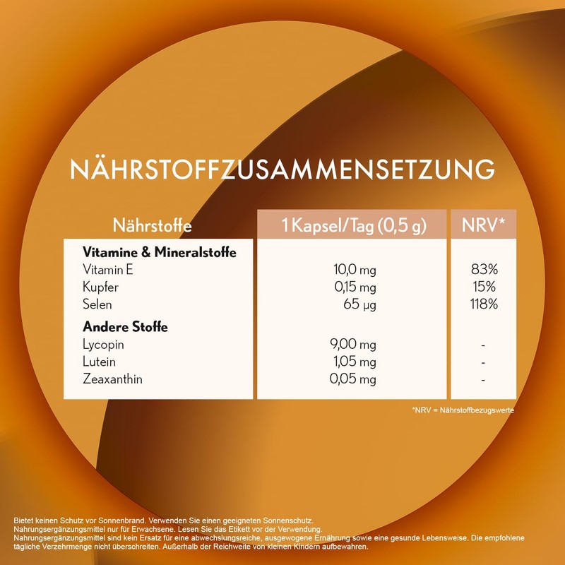 • Suggested use: take 1 capsule per day during a meal, one month before, during and after sun exposure; does not protect from the sun and does not provide protection against sunburn; be sure to use a suitable sun protection; suitable for adults only