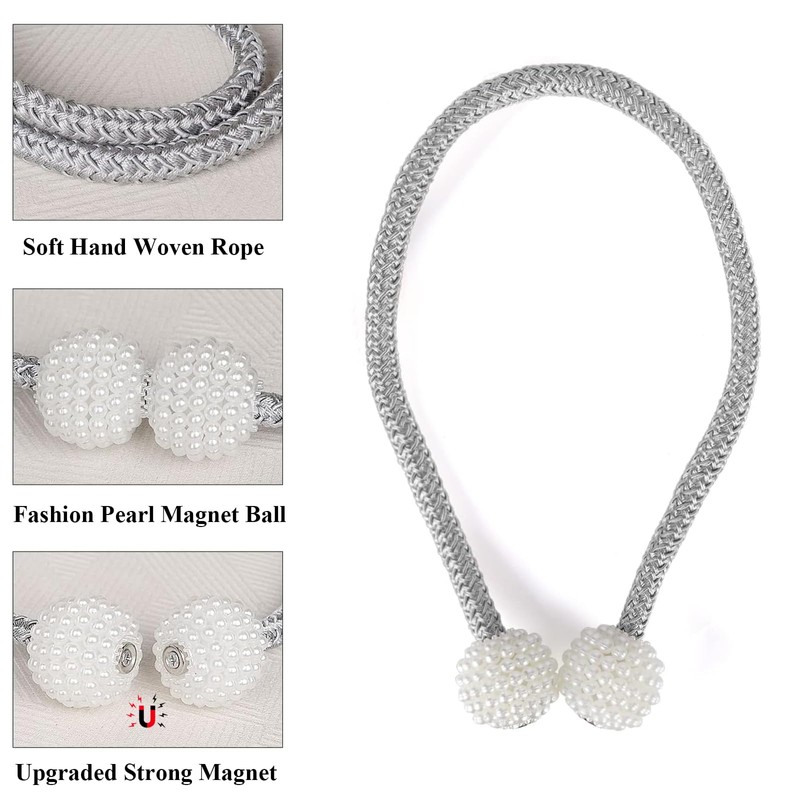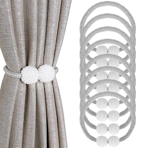 Oenothera 8 Pieces Magnetic Tie Backs for Curtains, Tie Backs for Curtains, Pearl Ball Curtain Magnetic TieBacks for Home, Office, Hotel Window Decorative(Gray)