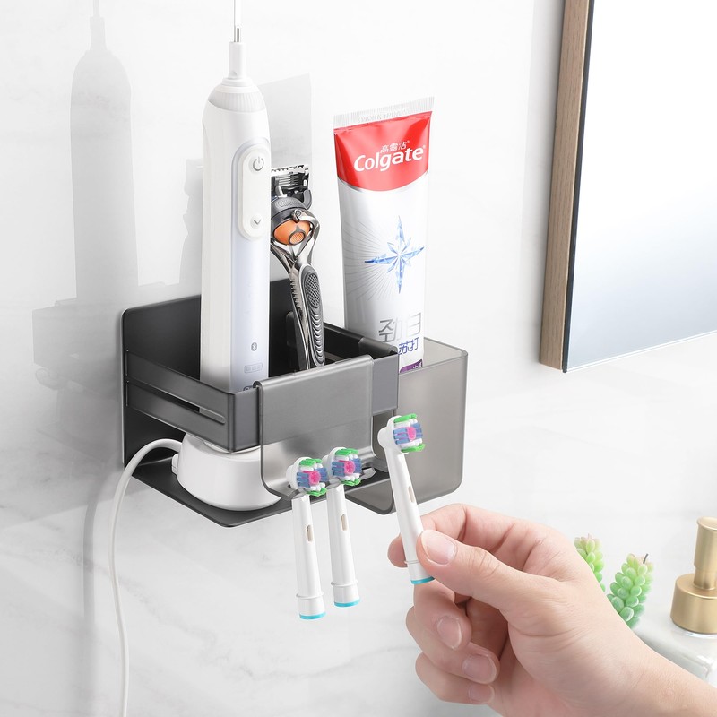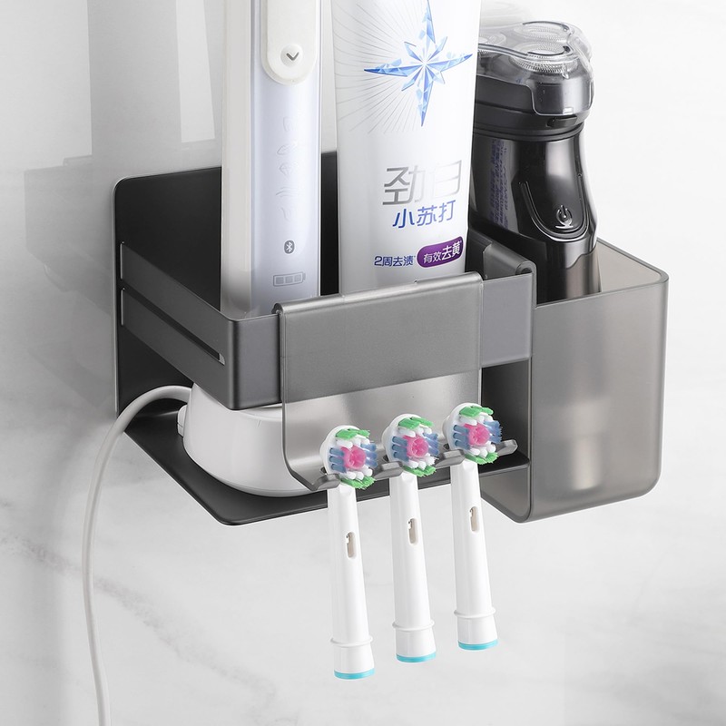 - Bequemes Aufladen: Sie können Ihre elektrische Zahnbürste direkt oben auf dem Regal aufladen. Der praktische Zahnbürsten-Organisator hält das elektrische Zahnbürsten-Zubehör in Ordnung und sorgt nicht nur für Ordnung im Bad, sondern spart auch Platz im Badezimmer