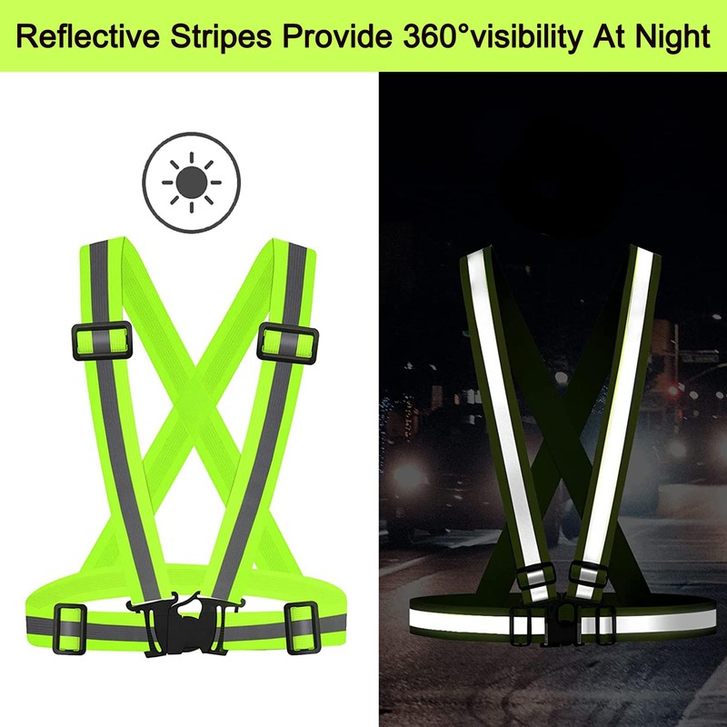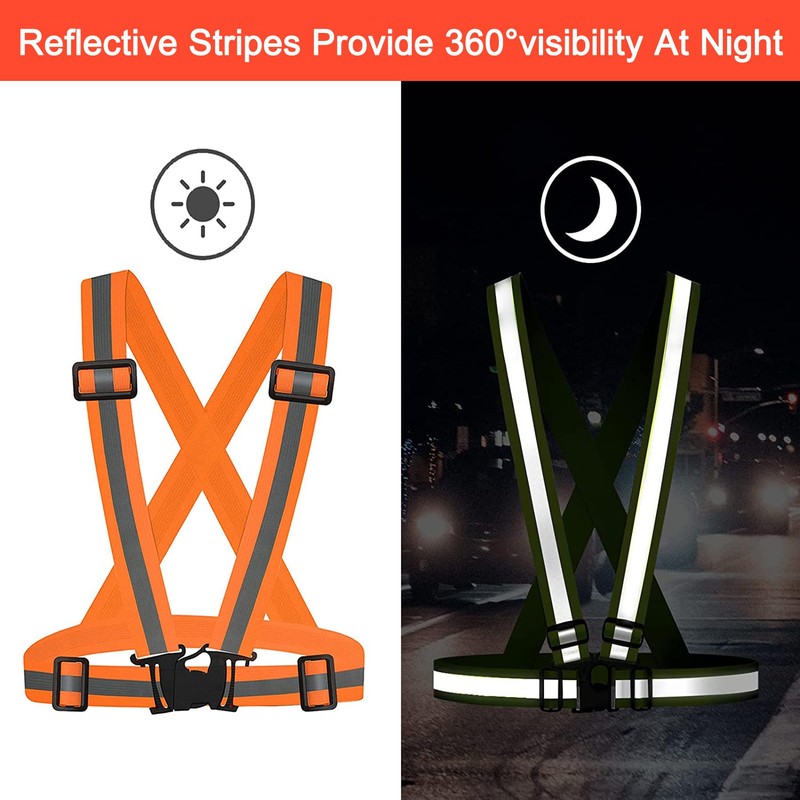 - Elastic and Adjustable: These reflective straps are elastic, with 4 adjustable buckles, shoulder to waist can expand from 14" to 24", waist circumference expands from 25" to 45", high flexibility, one size fits most