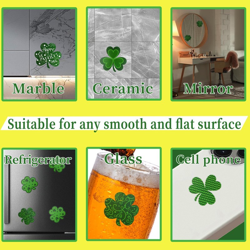 • Packing include: Various Shamrock Patterns window clings-8 Sheet x 108pcs St.Patrick's Day Window Clings, 108pcs decals in total include various styles and various sizes of shamrock patterns. Let every window glow with st patrick's day decor shamrock stickers