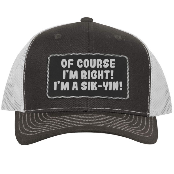 of Course I'm Right! I'm A SIK-Yin! - Leather Black Patch Engraved Trucker Ha...