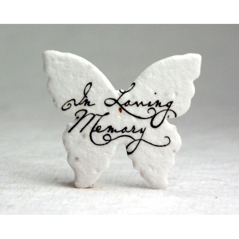 Of The Earth Handmade Paper - Wildflower Seed Paper Small Butterfly Shape - B/W Script Variations - 1.5" x 2" - Set of 48 (in Loving Memory)