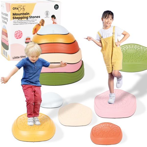 OfaBaby 6Pcs Stepping Stones for Kids - Non-Slip Edging Kids Stepping Stone, Holds up to 220 Ibs for Promoting Children's Coordination Skills, Best for Stability - Toddler Stepping Stones