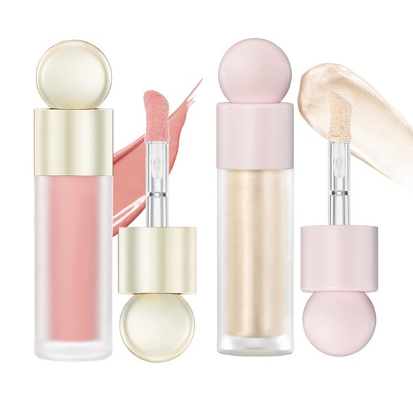 Ofanyia 2 Pcs Liquid Blush & Highlighter, Soft Cream Highlighter Blush Face Makeup, Lightweight Blendable Feel, Shimmer Liquid Highlighter Illuminator, Easy to Blend Soft Velvet Liquid Blusher