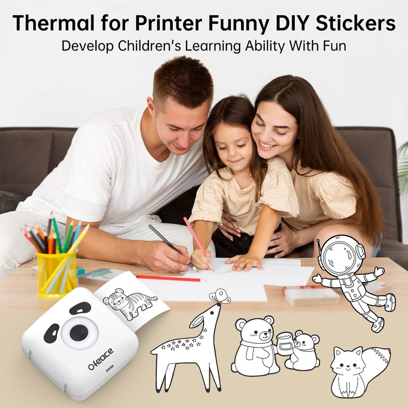 - đšăChildren's Favorite Portable Mini PrinterăThe new function of the APP - one-click printing of shortcut templates: list/note/learning/stick figures/animals/plants/characters/fruits/vegetables/traffic... The inkless thermal sticker printer allows you to enjoy parent-child education with your children. DIY coloring games, let your children improve their ability to create colors with constant fun. The ideal pocket printer for children's education.