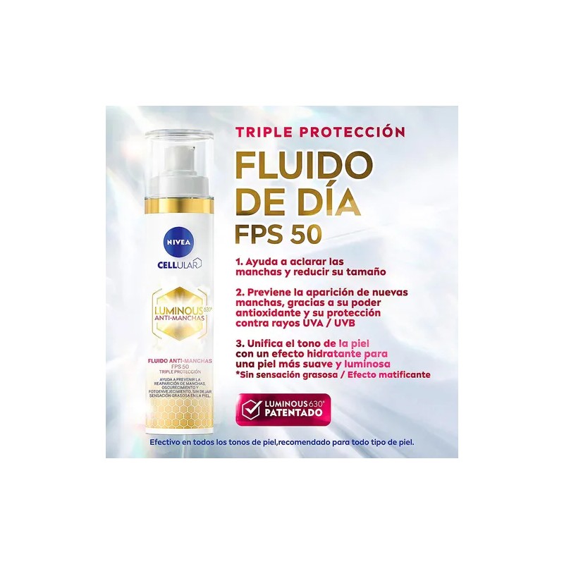 ¡Elimina manchas y rejuvenece tu piel con el tratamiento antimanchas más vendido de Nivea! Este pack incluye 2 productos estrella de la línea Cellular Luminous 630°, formulados con tecnología alemana para una triple acción: