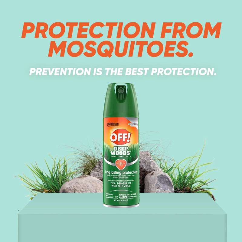 OFF! Deep Woods Insect Repellent *V* provides long lasting protection from mosquitoes, ticks (including ticks that may cause Lyme disease) and biting flies: stable flies, blackflies, and sand flies. Also repels chiggers, fleas, gnats, no-see-ums from treated skin and clothing. OFF! Deep Woods Insect Repellent *V* gives effective protection and is not greasy, won't stain and resists perspiration. Product label may vary.