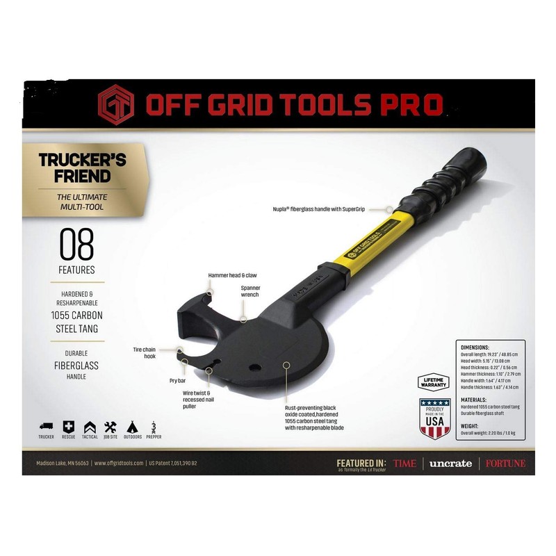 Off Grid Tools Pro Trucker’s Friend – Yellow, Carbon Steel Blade, Shock Absorbing Grip, All-Purpose Multitool, Made in USA, Curved Axe Head, Hammer, Pry Bar, Nail Puller