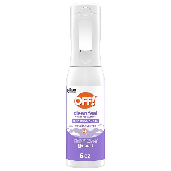 OFF! Clean Feel Mist is an insect repellent spray perfect for everyday moments. With soft mist technology, this lightweight bug spray feels good on skin and isn't sticky or greasy. OFF! Clean Feel delivers long-lasting protection* for up to 8 hours from mosquitoes, ticks, and biting flies. This outdoor bug deterrent spray protects you and your family with 20% picaridin, and it won't stain or damage clothing. The easy-toapply mist makes it simple to spray and go. It even sprays upside down for effortless application on hard-to-reach areas. *when used as directed
