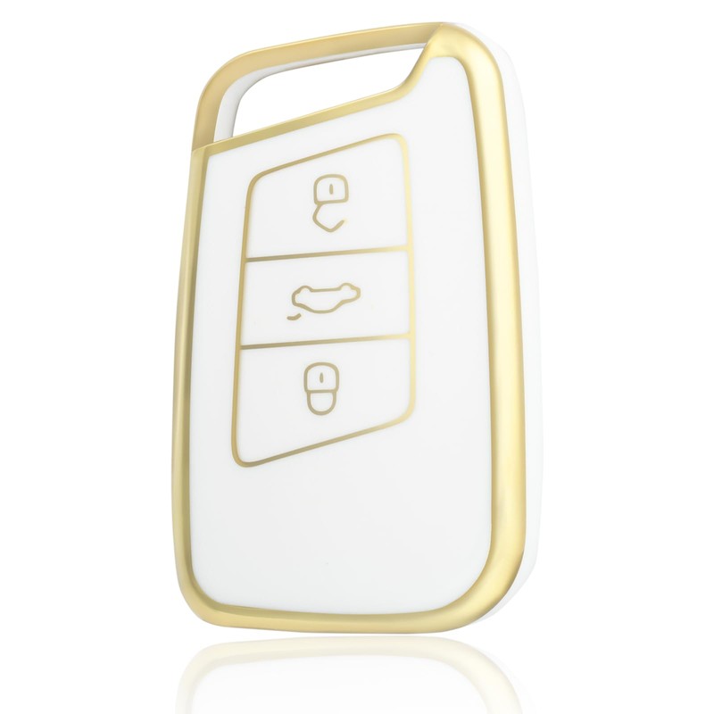 OFF WE GO Car Key Case for VW Key Cover for Volkswagen Golf Passat Alltrack Arteon Atlas Jetta Skoda Kodiaq Superb A7 3 Buttons TPU Car Key Protective Case Key Box White Gold