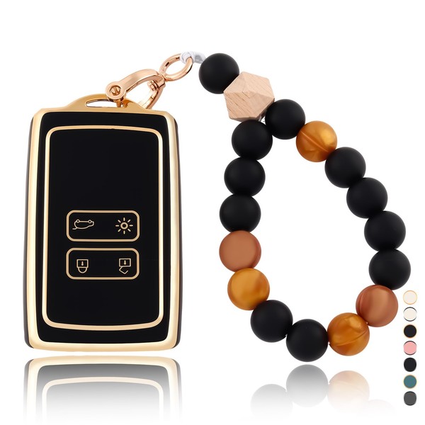 OFF WE GO Car Key Case Key Cover for Renault Dacia Duster Captur Kadjar Espace Megane Kangoo Arkana Arcan Key Cover with Key Fob Key Protection Case Black Gold