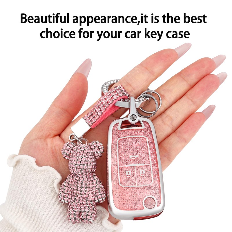 OFF WE GO Car Key Cover Case Car Key Fob for Opel Vauxhall Astra Gtc Insignia Vectra Cruze Captiva Orlando Insignia Full Protection Car Keychain Shell Car Key Holder Box 3 buttons, Pink Silver