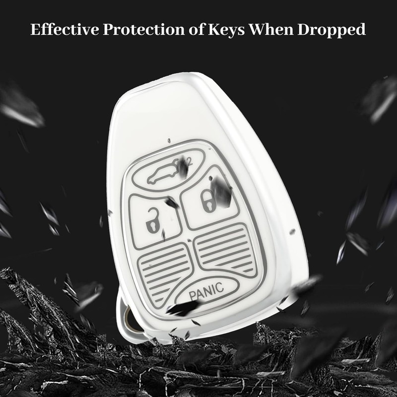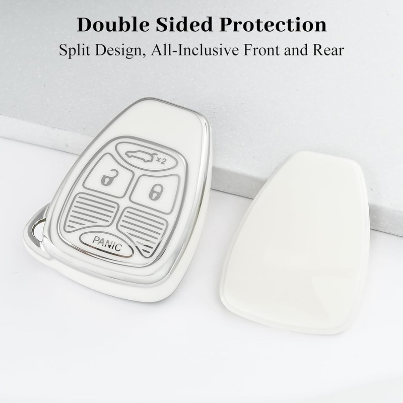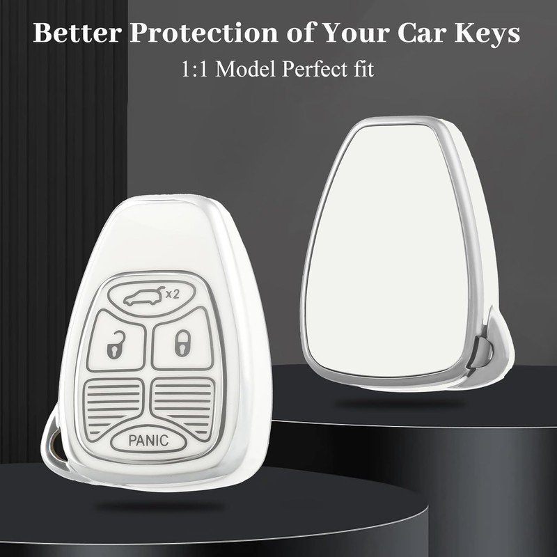 OFF WE GO for Jeep Key Fob Cover, Soft TPU Car Key Case Protection Compatible with Jeep Wrangler Compass Dodge Ram Durango Caliber Dakota Nitro Chrysler Smart Car Key Accessories (Silver White)