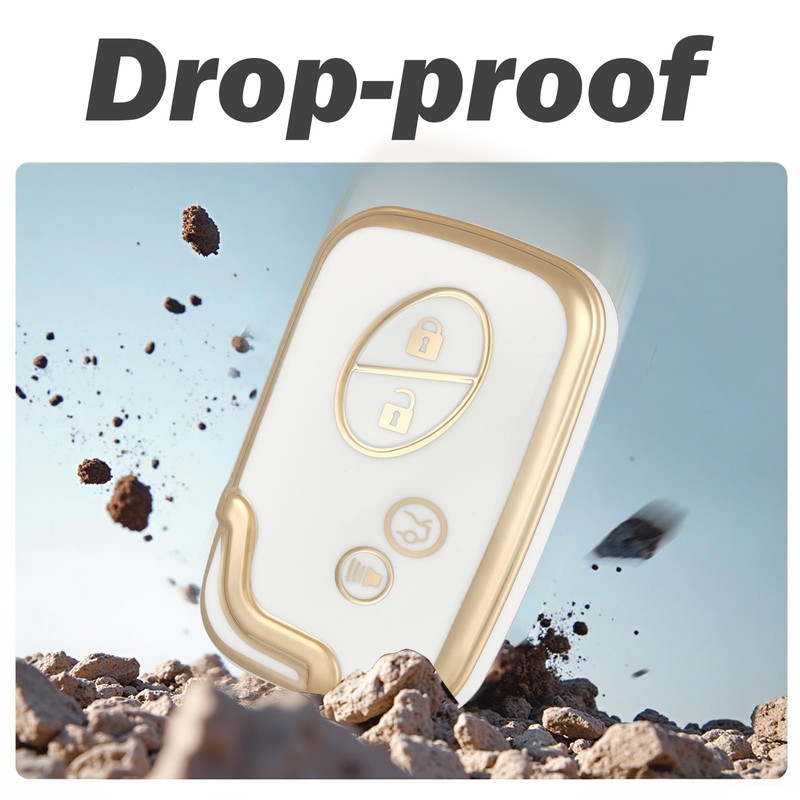 OFF WE GO for Lexus Key Fob Cover with Leather Keychain, Soft TPU Key Fob Case Fit for Lexus GX460 RX350 IS250 LX570 ES350 IS350 GS430 GS300 GS450h Smart Remote Car Key Protector (Gold White)