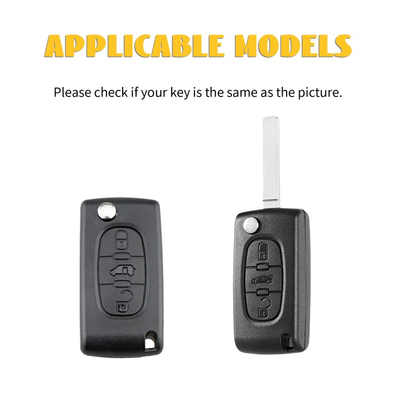 - Anwendbare ModelleSchlsselhlle Cover ist kompatibel mit Peugeot 107 207 307 407 607 208 308 408 und Citroen C2 C3 C4 C5 C6 C8 C-Triomphe C-Quatre XSARA Picasso.(Hinweis: Aufgrund der verschiedenen Modelljahre sind die Schlsselversionen unterschiedlich, bitte w?hlen Sie die richtige Schlsselabdeckung entsprechend dem Bild).