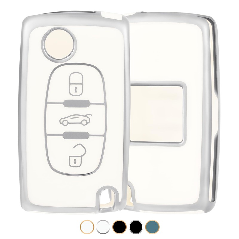 OFF WE GO OFF WE GO Autoschlssel Hlle Schlsselhlle Cover fr Peugeot 107 207 307 407 607 208 308 408 Schlsselcover Schlsselbox fr Citroen C2 C3 C4 C5 C6 C8 C-Triomphe Schlssel Schutz Geh?use,Wei? Silber