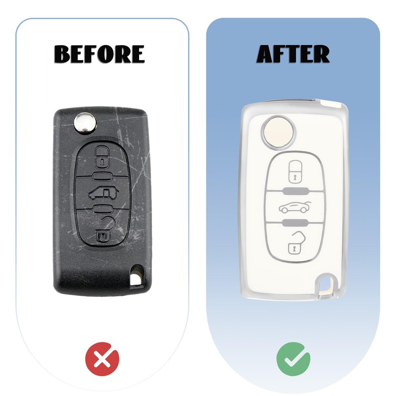 - Anwendbare ModelleSchlsselhlle Cover ist kompatibel mit Peugeot 107 207 307 407 607 208 308 408 und Citroen C2 C3 C4 C5 C6 C8 C-Triomphe C-Quatre XSARA Picasso.(Hinweis: Aufgrund der verschiedenen Modelljahre sind die Schlsselversionen unterschiedlich, bitte w?hlen Sie die richtige Schlsselabdeckung entsprechend dem Bild).